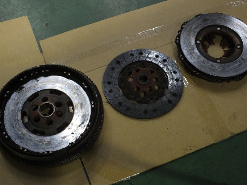 次にクラッチが結構減っているようで、ペダル操作も重くなっていました。クラッチディスク、プレッシャープレート、レリーズベアリング等を交換し、こちらも修理完了です。