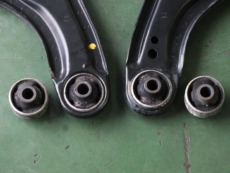 こちらは、サブフレームの脱着ついでに併せてフロントコントロールアームブッシュをECS製ウレタン強化ブッシュに打ち変えました。ここを交換するだけで走行安定性がすごくよくなるのでおススメです。これからもGOLF4 GTIで楽しんでください!
