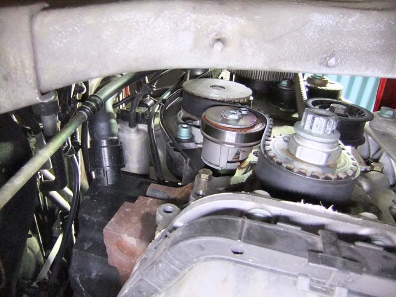 6N POLO GTIです。エンジンから異音が発生し調べたところタイミングベルトテンショナーが破損していました。危うくタイミングがずれてエンジンにダメージを被るところでしたが、事なきを得ました。タイミングベルトキットとウォーターポンプを交換して修理完了です。