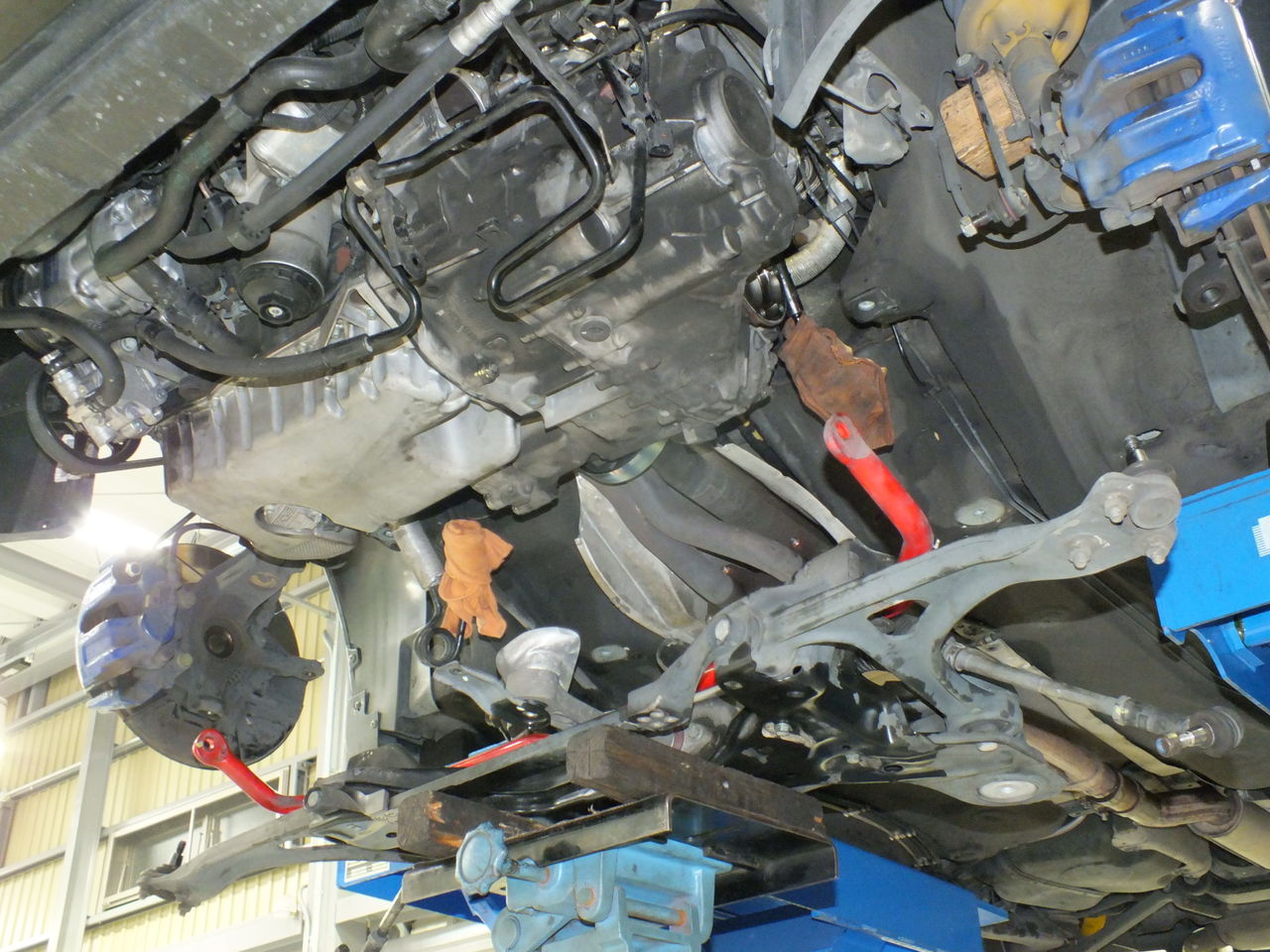 エンジンマウント、ミッションマウント、エンジントルクロッドブッシュを交換します。これらのマウント類も経年劣化により室内への振動が大きくなったり、発進時やギアチェンジなどでエンジンの揺れが大きくなり不快です。交換後はエンジンが静かに感じますよ!