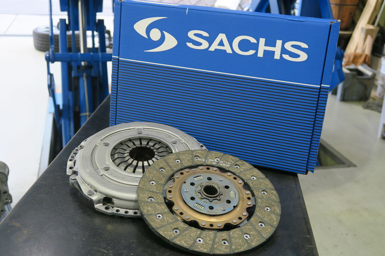 クラッチ交換です。走行距離約11万キロを走行しついにすべり始めてしまいました。今回使用するのは『NEUSPEED スポーツクラッチキット』シングルフライホイールと強化プレッシャープレートに変更されますので、クラッチワークの節度感がとても良く操作性が向上します。