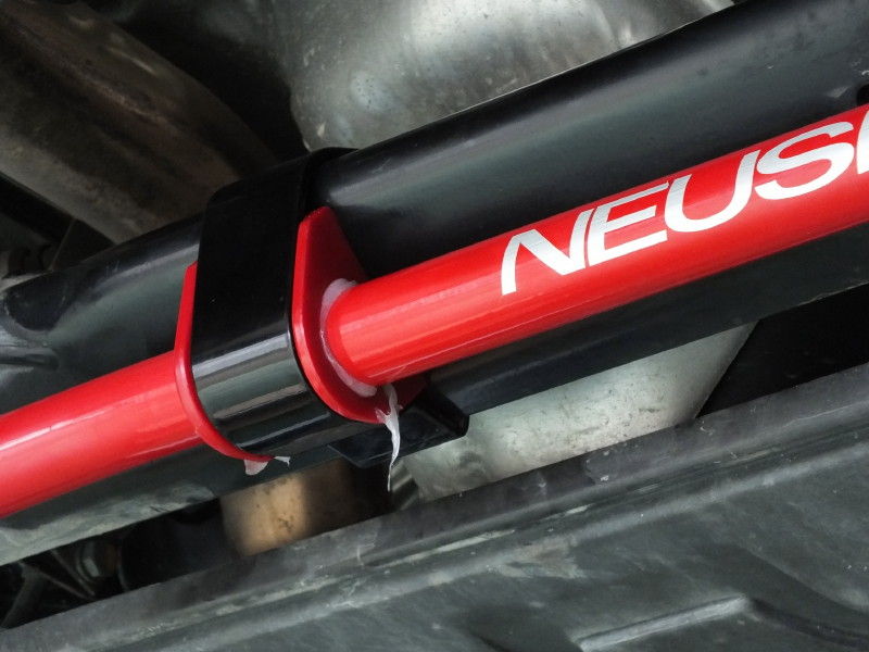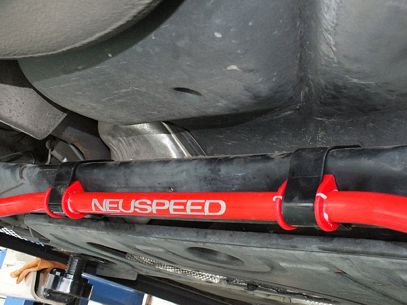 サスペンション廻りもスタビライザー、ウレタンブッシュで強化しました。スタビライザーは前後ともにNEUSPEED Sway-Bar、フロントコントロールアームはECS Tuning製の強化ウレタンブッシュです。ロールスピードがわかりやすく、コーナリングの姿勢を安定させます。