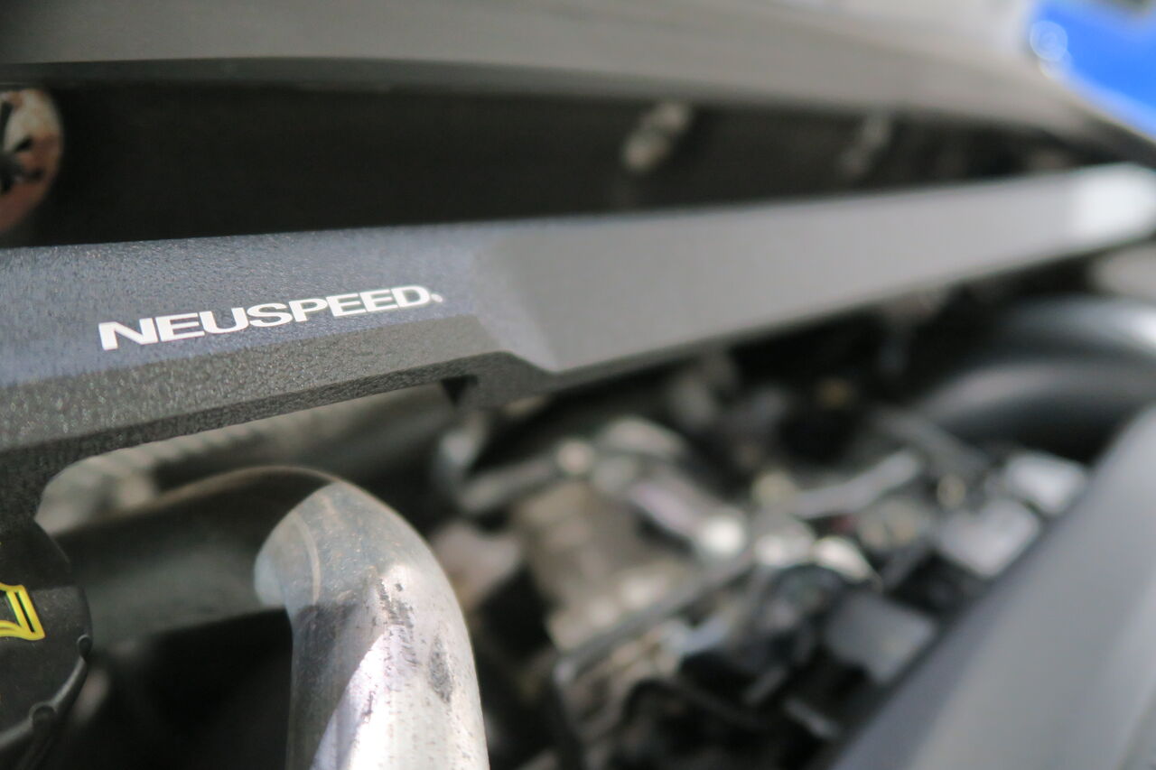 ボディ補強パーツの「iSWEEP Power Brace Front Lower Arm Power Brace & Center Floor Power Brace Rear 3 piece」と「NEUSPEED Front Upper Strut Tie-Bar」を装着しました。適切にシャーシやフレームのウィークポイントを補強することで路面からの入力によるボディの捩れを低減し、しなやかなサスペンションの動作をサポートします。フロアを強化することで路面からの入力はシャーシに逃げることなくサスペンションによって吸収され、しなやかな走行性を実現しますのでより楽しい車に仕上がります!