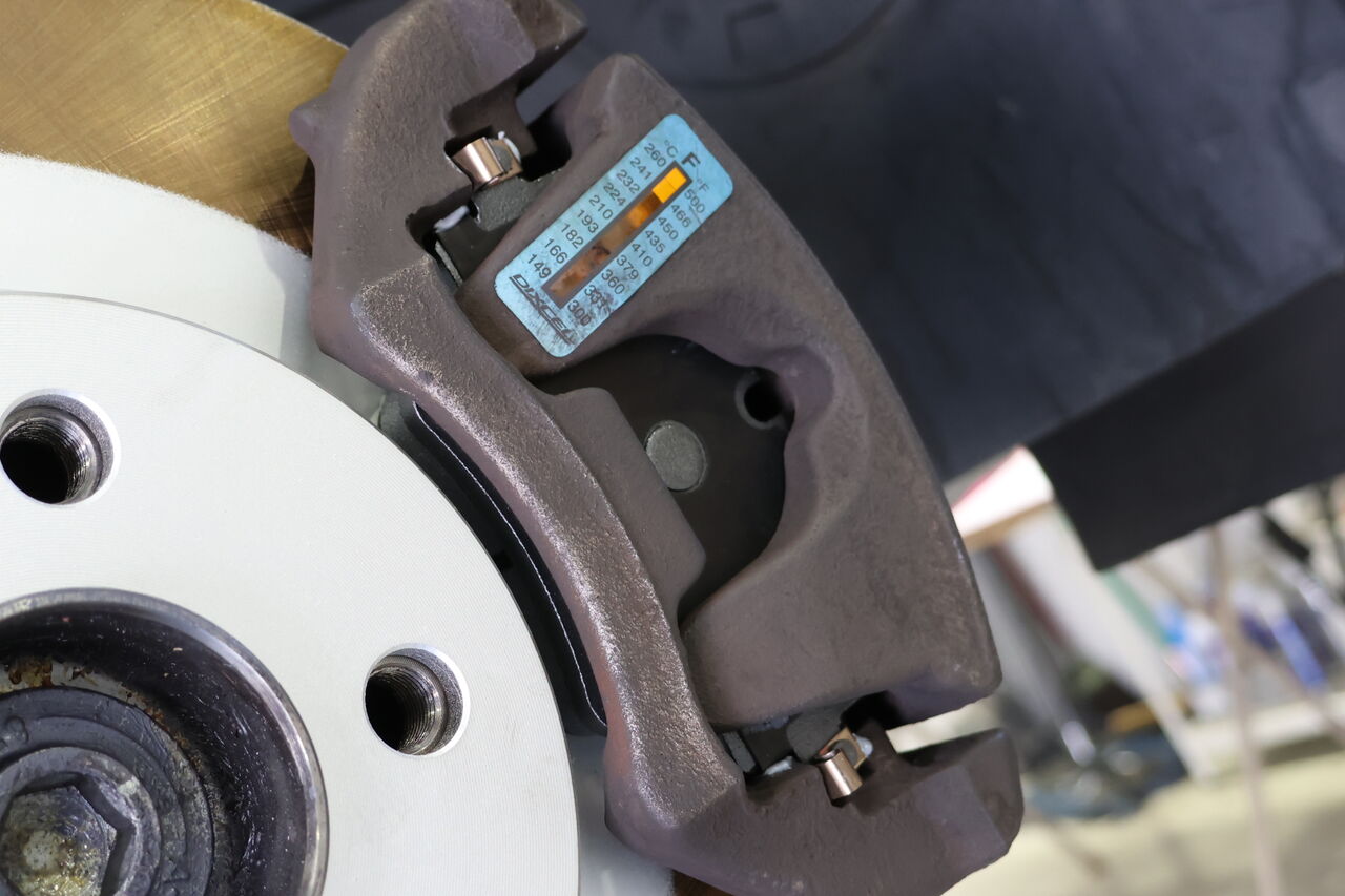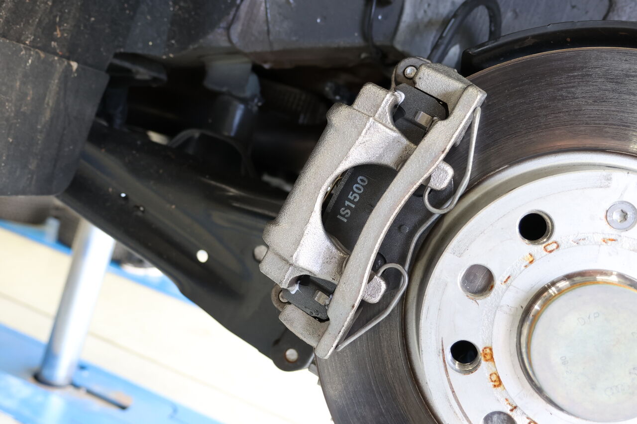 A1(8X)の車検整備でお預かりしました。今回は点検とあわせてエンジンオイル&ブレーキフルード、ブレーキパッドの交換をご依頼いただきました。ブレーキパッドは摩耗により交換が必要な状態でしたので「iSWEEP IS1500」に交換させていただきました。IS1500は低ダスト性能に優れブレーキダストによるホイール汚れを軽減し、市街地走行条件では純正比+αの効力で安心してお使いいただけます。またローターの摩耗量も純正に比べて大幅に減少するため長期的なランニングコスト抑制にも効果を発揮します!