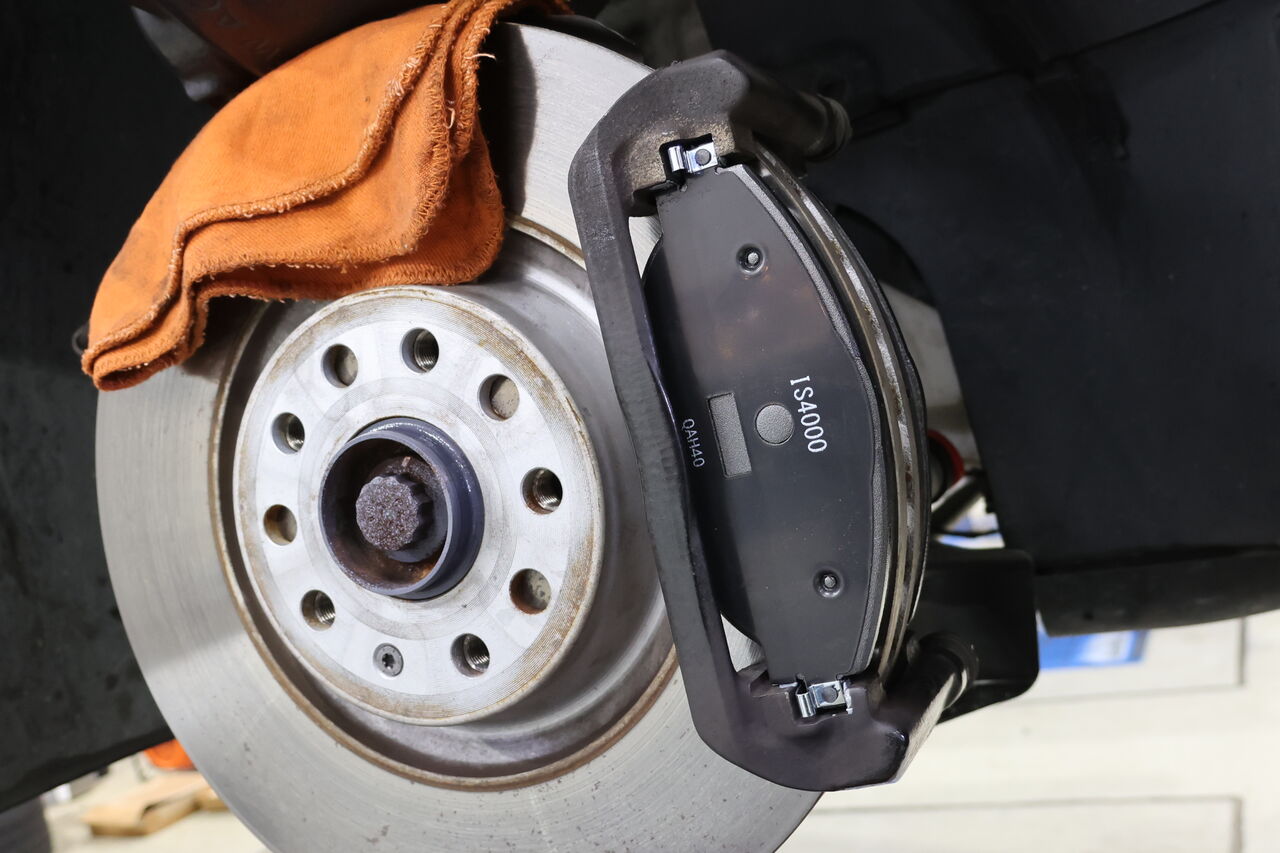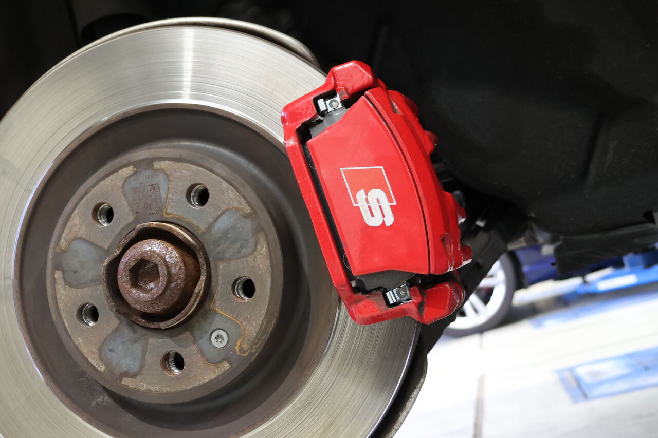 S3(8V) Sedanのブレーキパッド交換でご来店いただきました。ブレーキパッドは「iSWEEP IS1500」を使用しました。IS1500は低ダスト性能に優れブレーキダストによるホイール汚れを軽減し、市街地走行条件では純正比+αの効力で安心してお使いいただけます。ペダルを強く踏み込む急制動時には純正同等以上の効力を発揮しますので、もしものシーンでも安心してご使用いただけます!