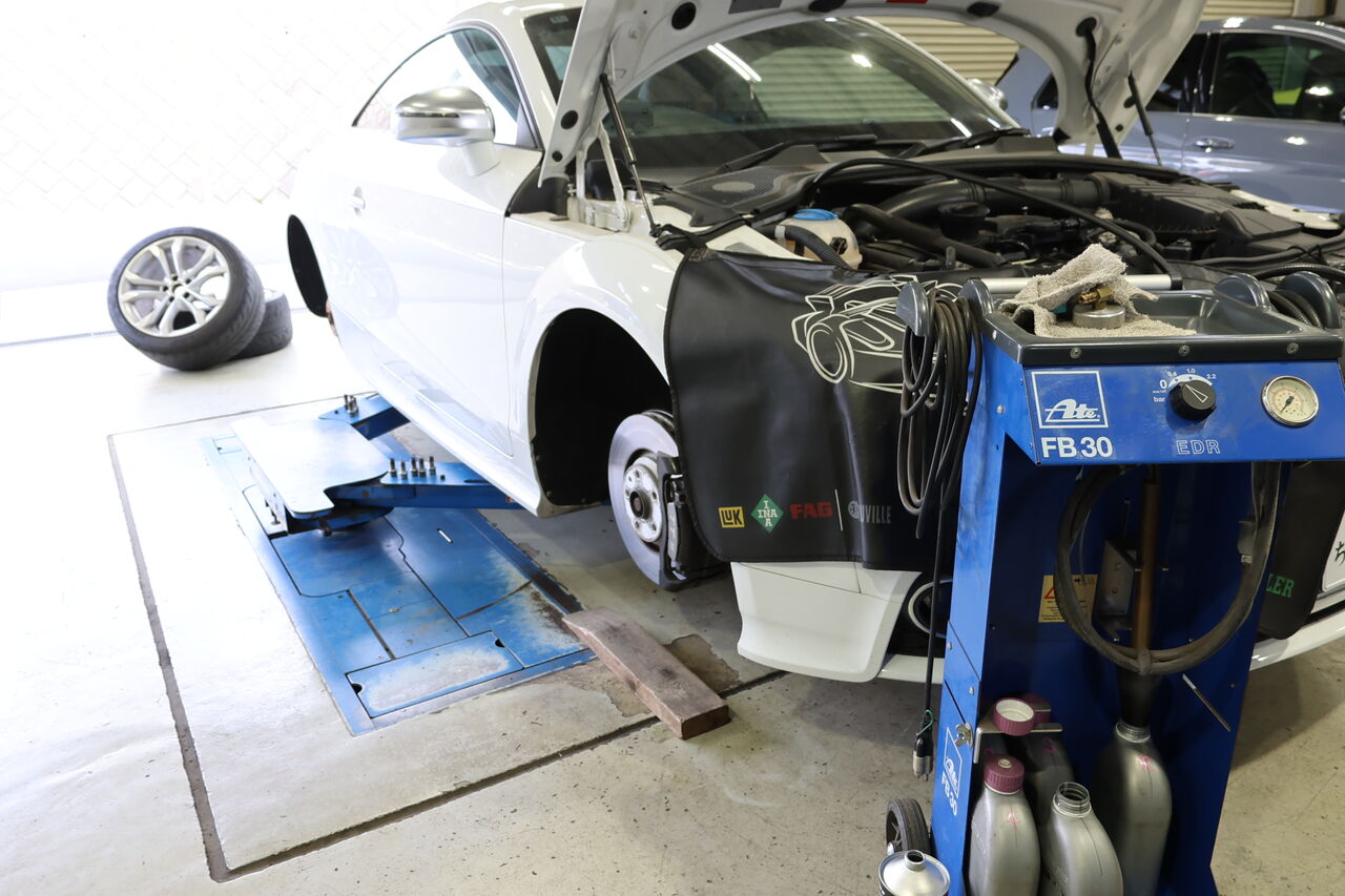 TT(8J) TTSのエンジンオイル・ブレーキフルード交換でご来店いただきました。ブレーキフルードは耐熱性の高い「iSWEEP RACING BF」を使用しました。サーキット走行などでハードなブレーキングを連続して行うと高温に晒されたフルード内に気泡が生じてブレーキ性能が大幅に低下するベーパーロック現象の発生リスクが高まります。そのため、安全にサーキット走行を楽しむにはブレーキフルードのグレードアップが重要となります!