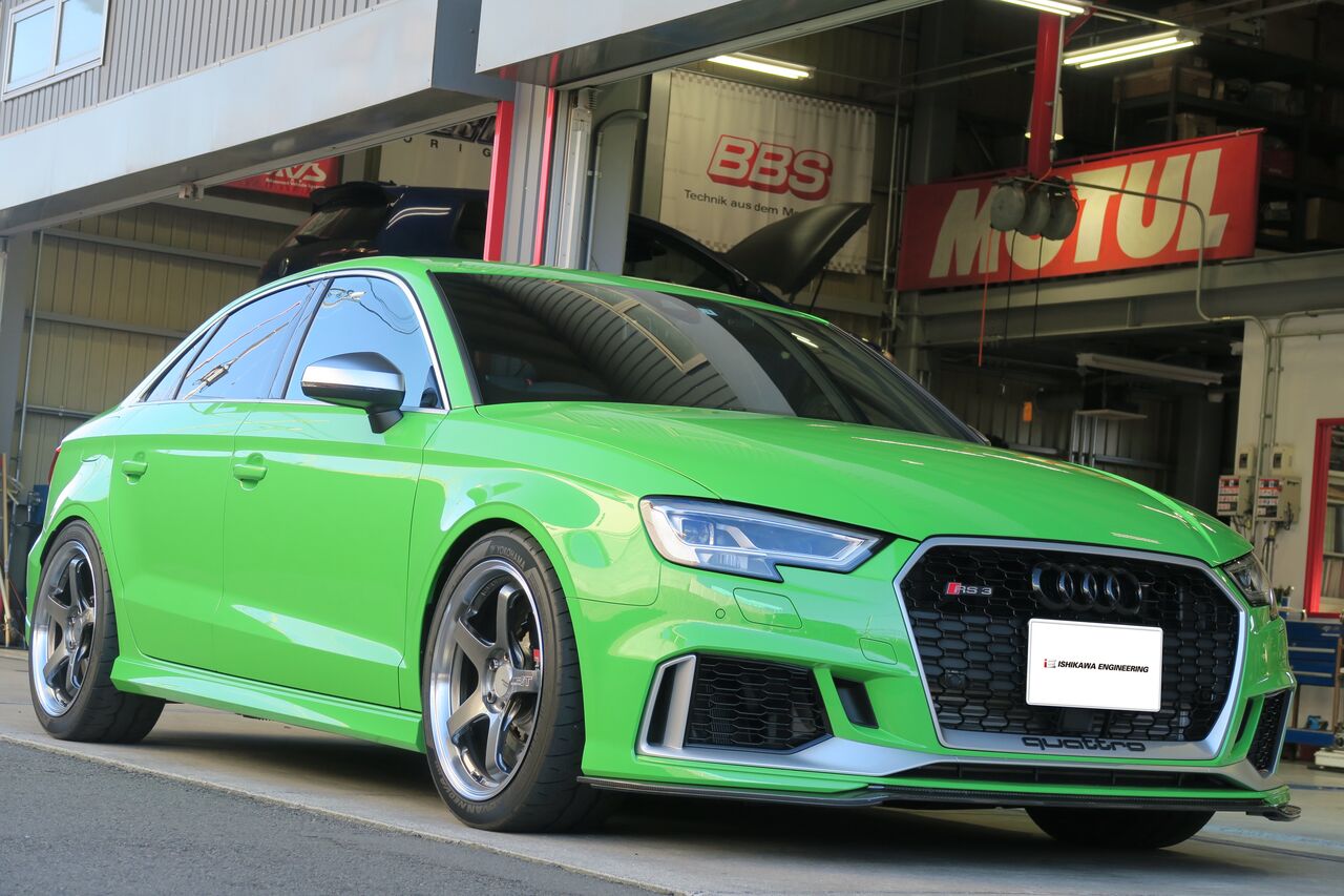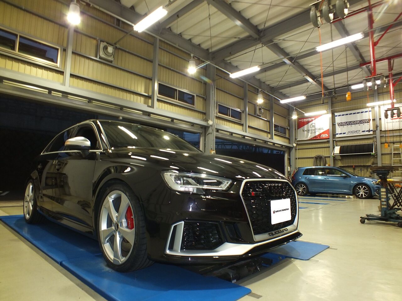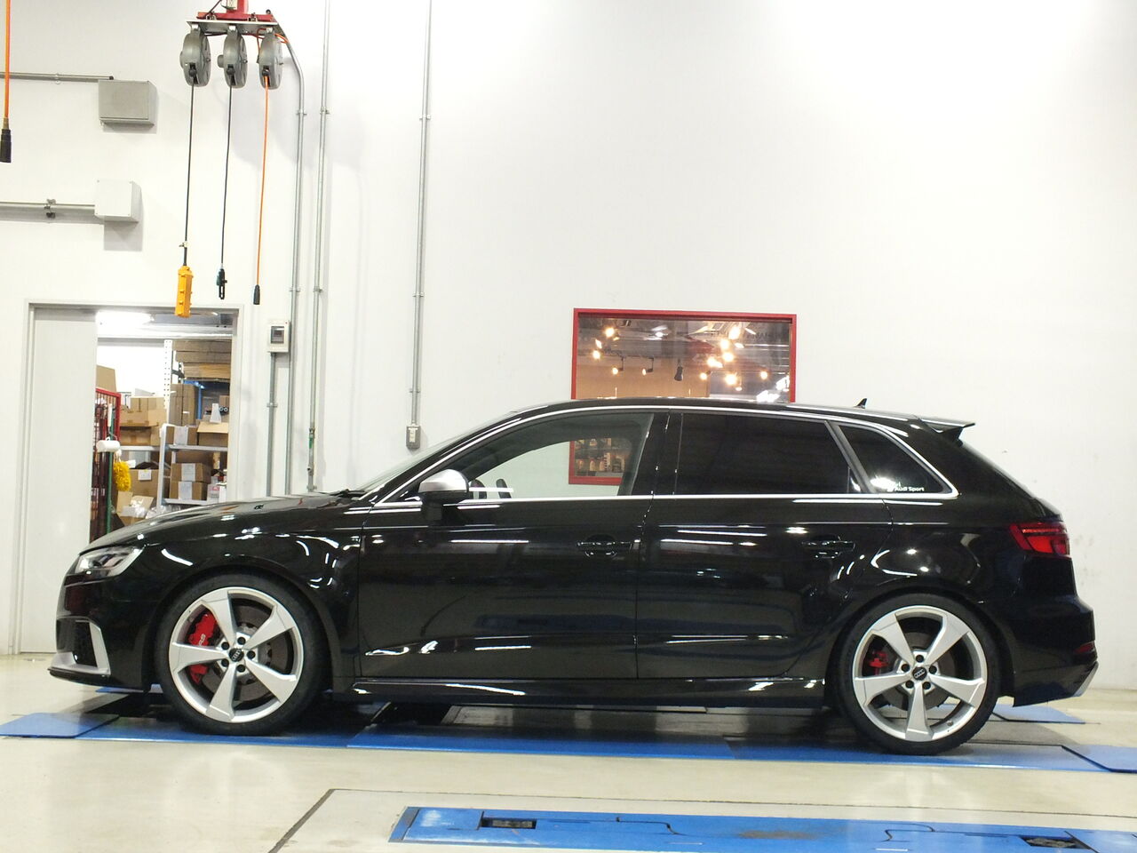 アウディRS3のチューニングについて昨年よりご相談をいただきまして、本日作業させて頂きました!車高を程良く下げつつ、乗り心地良く、コーナリングも快適に走行できる製品としてNEUSPEED Sport Spring Kitを装着させて頂きました!同時に更なる快適性を寄与するiSWEEPリジッドカラーと静粛性の高いMICHELIN Pilot Sport4 Sを装着させて頂き、ルックスと乗り心地にフォーカスしたチューニングとなりました。~~使用パーツ~~