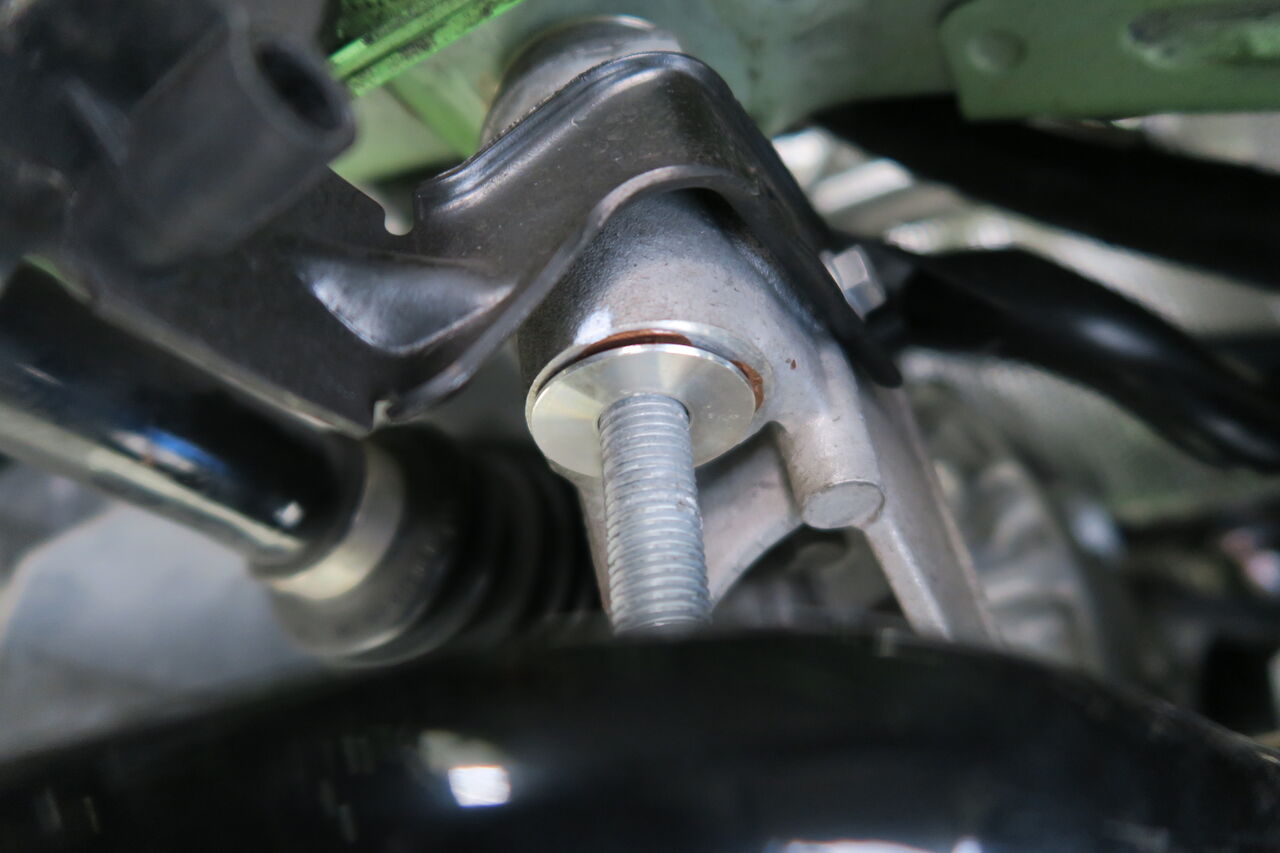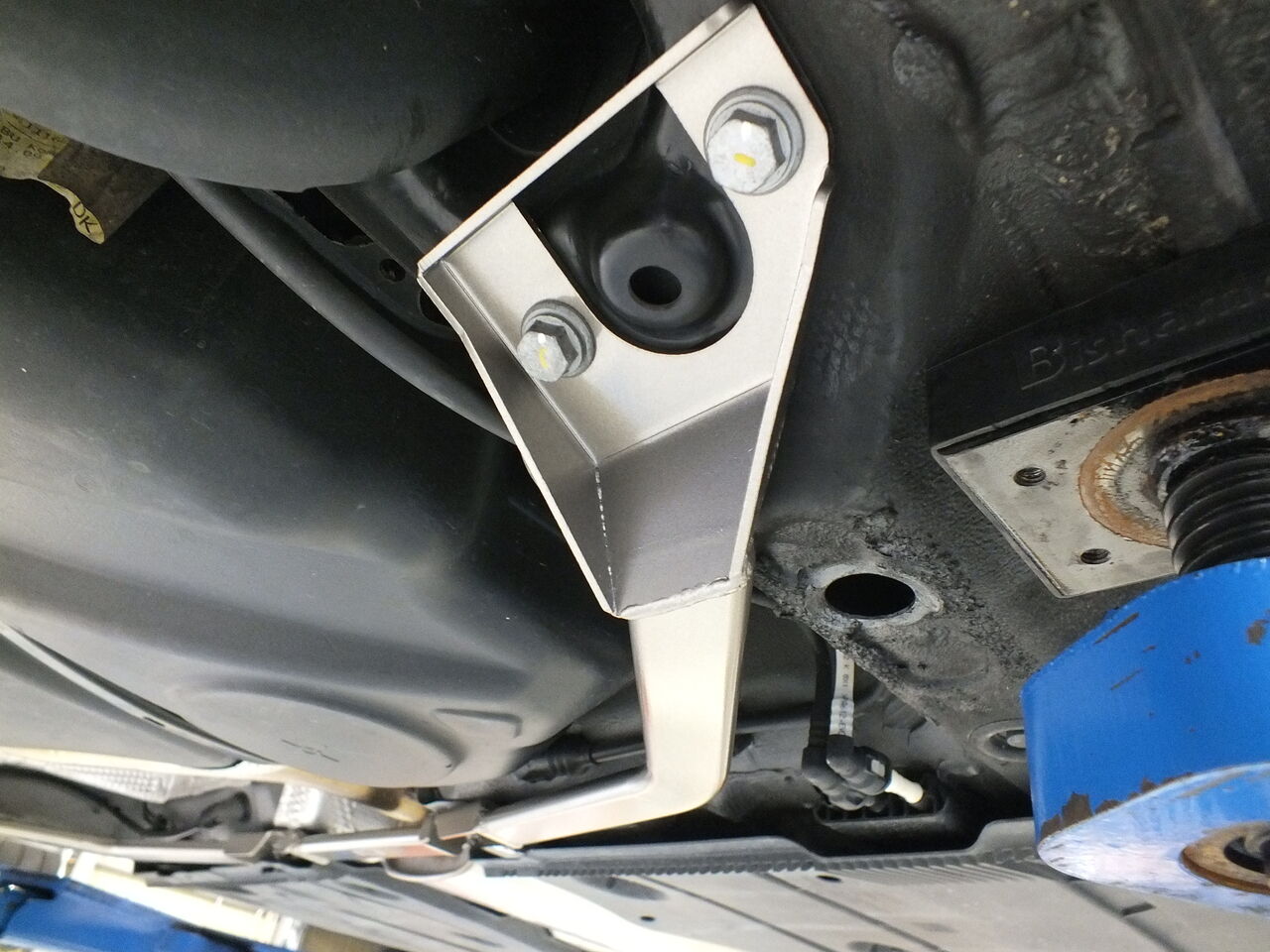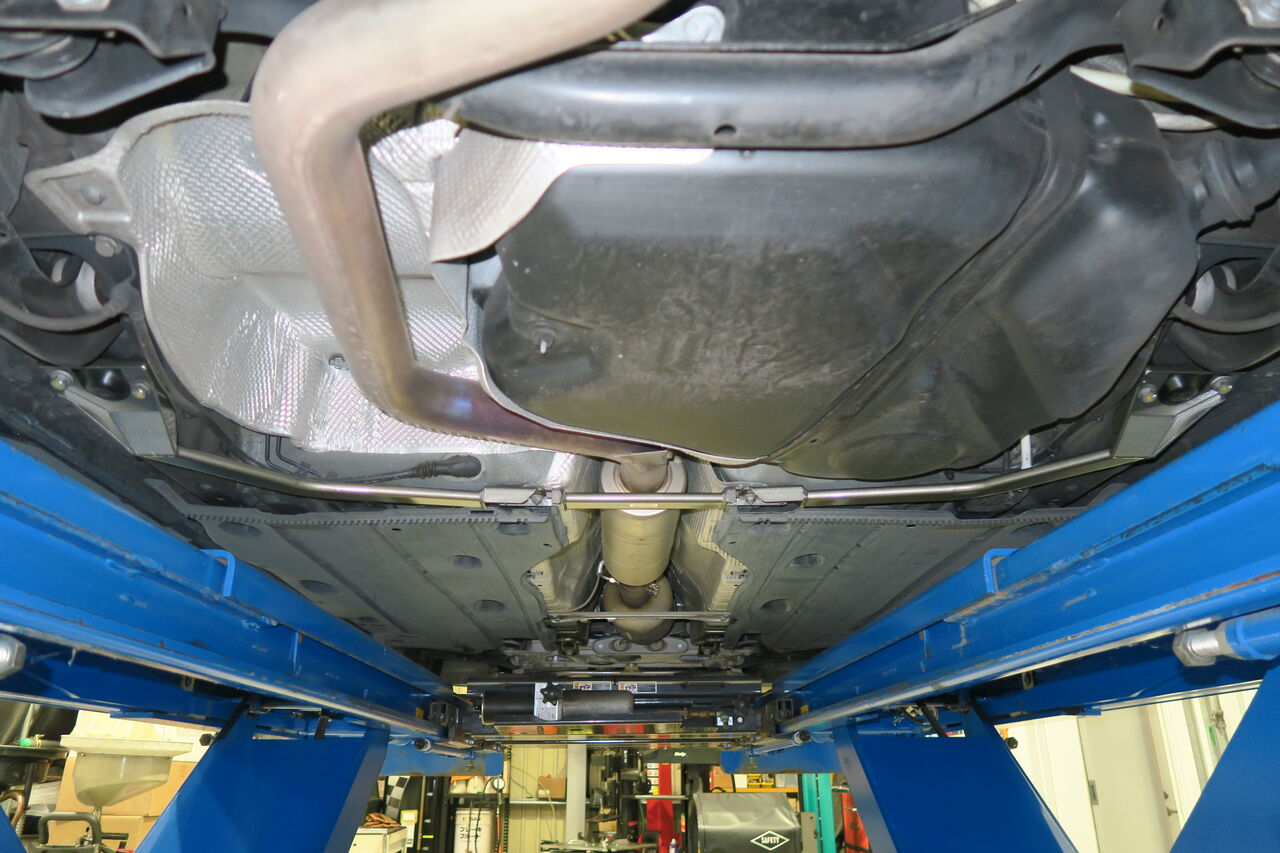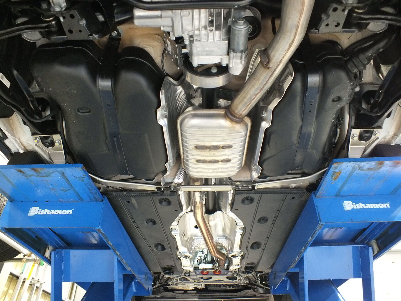 純正状態ではホイールが内側に窪み過ぎている!とのことでホイールスペーサーを装着させて頂きました。装着させて頂いた厚みはフロント5mmとリア10mm。今後ローダウンするということもあり、少し張り切った厚みですね!そして追加で頂きました作業はセンターフロアブレース(リア)の装着です。車両によりアンダーカバーと干渉することがありますが、当社ではお互いに居心地がいいように最低限の加工をアンダーカバーに施しまして装着しております!