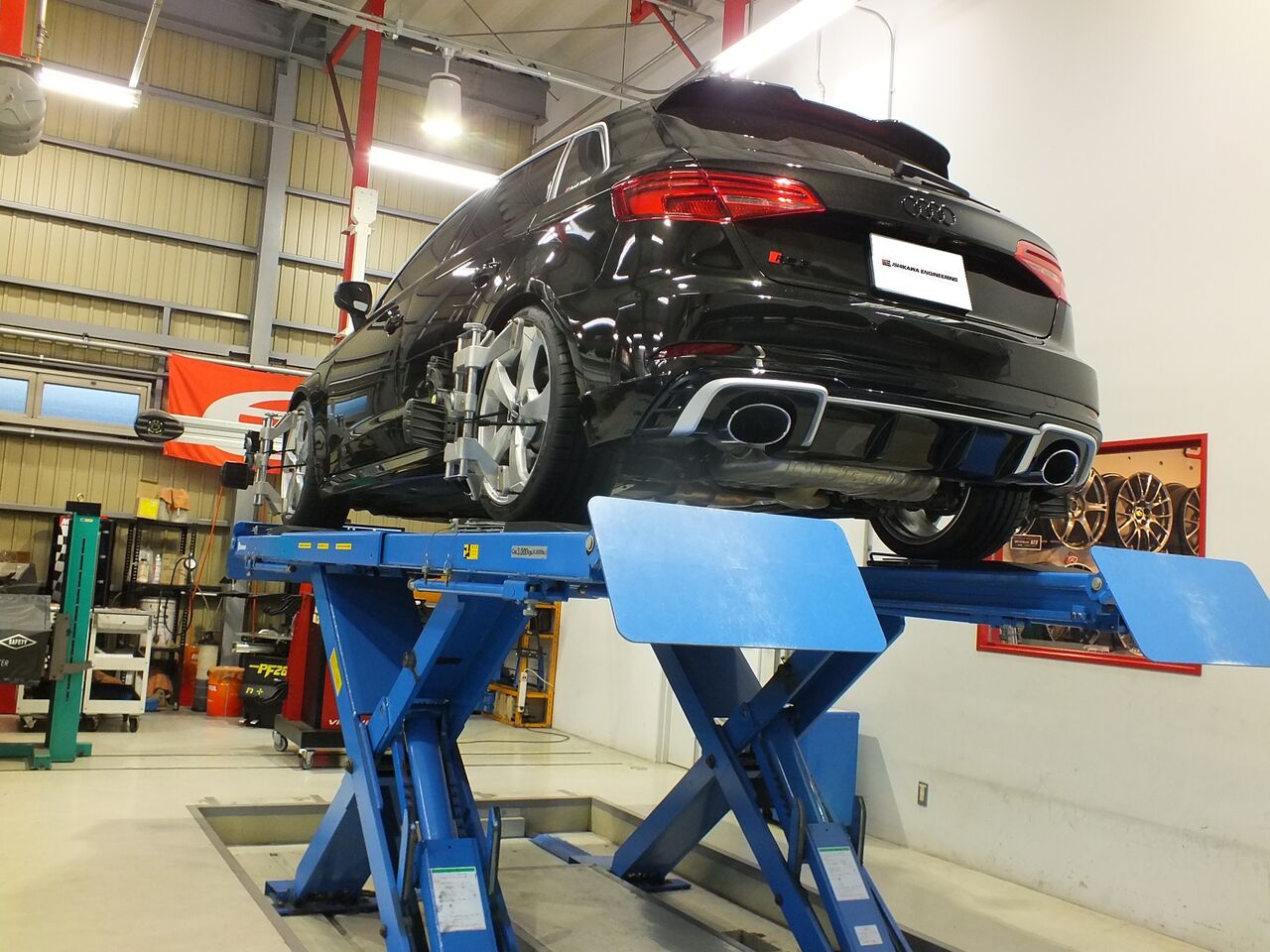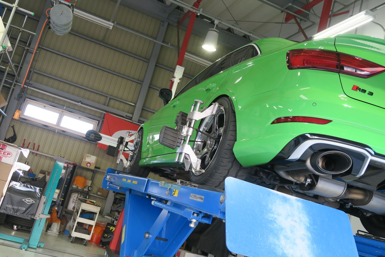 RS3(8V)のサスペンション周りアップデートチューニングでご入庫いただきました。まずは「iSWEEP Sub-Frame Rigid Collar」を装着させていただきました。サスペンションの基礎となるサブフレームを正確かつ強固にボディに固定し、性能を阻害するフレームの余計な動きを抑えます。併せてスタビリンクを「NEUSPEED Front Adjustable Sway Bar Link」に交換させていただきました。鉄板をコの字型に曲げただけの純正リンクをアルミビレッド製のロッドへ交換することで車体のロールをリニアにスタビライザーへ伝達し安定感の高いコーナリングを実現します。仕上げに3Dアライメントテスターを使用した正確な4輪整列を行い完成です。このようにサスペンションのウィークポイントを的確にアップデートすることで車両がもつ本来の性能を引き出した走りをご体感頂けます!