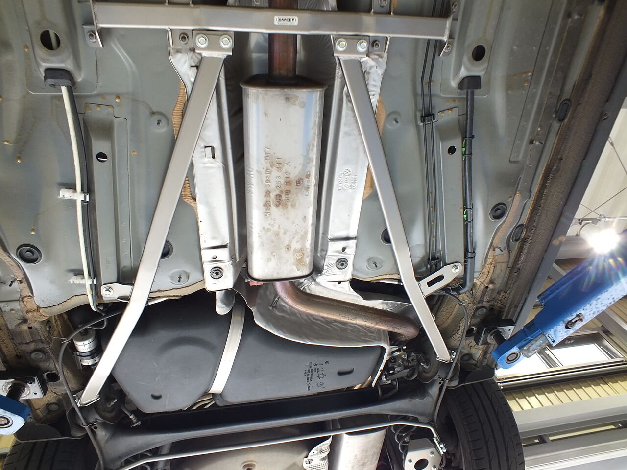 車両の安定性と向上とリアからのバタツキを改善したいと、ご来店になられたオーナー様にお勧めさせて頂きましたのはiSWEEPセンターフロアブレースリア3ピースです。
