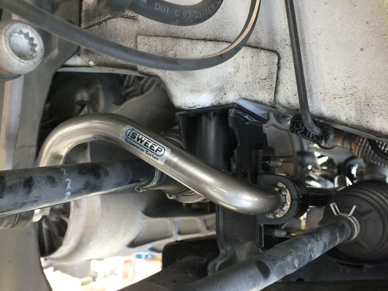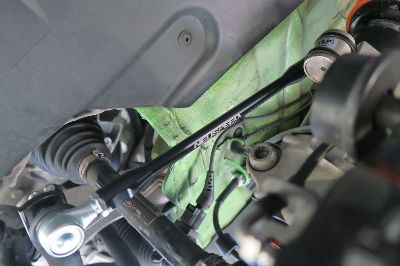 思い通りの走行ラインをトレースできるようなドライビングを実現させるためにNEUSPEED リアスウェイバー(スタビライザー)とiSWEEP補強パーツを装着させて頂きました。そしてちょうど交換時期だったエンジンオイル交換も合わせて行いました。