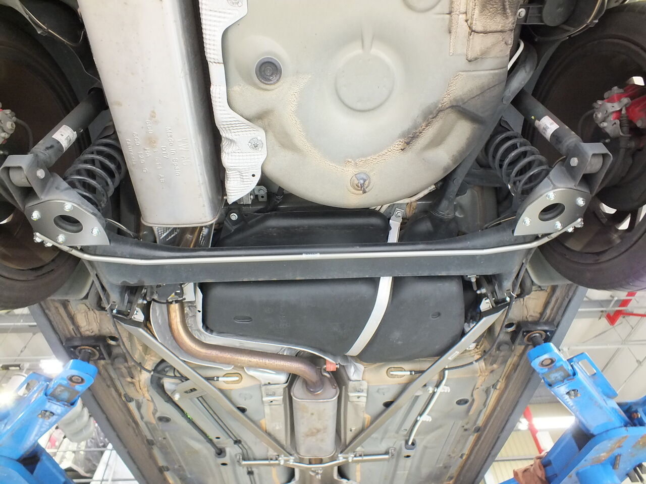 GOLF7.5 GTI TCRのボディ補強チューニングでご入庫いただきました。純正でもボディ剛性の高さに定評のあるゴルフですが、フロア中間付近からリアサスペンションにかけては相対的に強度の低いウィークポイントになっており、リアサスペンションの性能をスポイルしてしまっています。 iSWEEP Center Floor Power Brace装着後は路面からの入力をサスペンションがリニアに吸収しバタツキを抑えたワンランク上の走りをご体感いただけます!