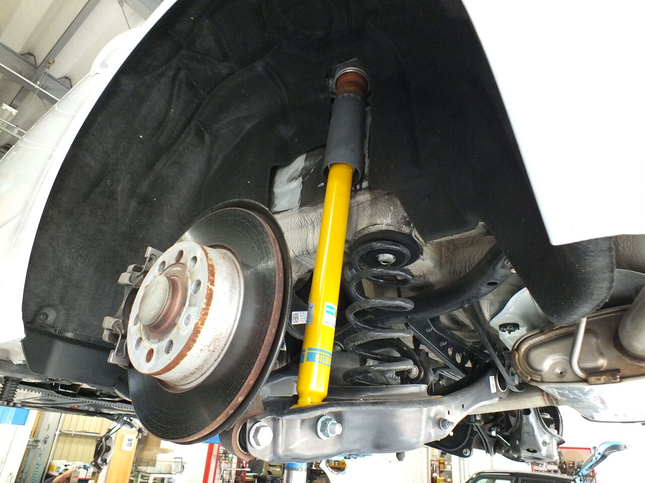 アウディA3CODのオーナー様からお問い合わせを頂いてから数ヵ月程経ち、本日ダンパーのリフレッシュを行わせて頂きました。大変お待たせいたしました。車高が下げたいという願望はなく、シャキッとした足回りにしたいというご希望から以前にも使用したことがあるというビルシュタインB6ダンパーを装着させていただきました。同時にアッパーマウントの交換も行ったため、予想通り若干車高が上がりました。そして追加でご依頼いただきましたセンターフロアブレースの装着で路面の荒れや速度を上げてのコーナリング中の快適性の向上を図りました。帰り道の高速道路走行はいかがでしたか?またのご連絡をお待ち致しております。~~使用パーツ~~