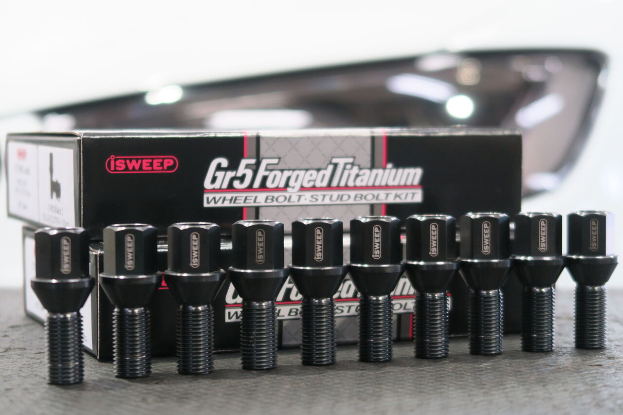 S3(8V) Sporbackに「iSWEEP Gr5 Forged Titanium Wheel Bolt」を装着させていただきました。純正のホイールボルトに比べて軽量かつ熱膨張率と熱伝導率が低いため、安定したトルク管理を実現できます。バリエーションはホイールの座面形状に合わせて13Rの球面と60°テーパー形状を用意しております。さらにボルトのヘッドタイプが17HEX、17HEXロング、T70トルクスの3種類、それぞれチタンシルバー、PVDブラック、PVDヒートチタンの3色がございますので足元のおしゃれとしてもオススメです!