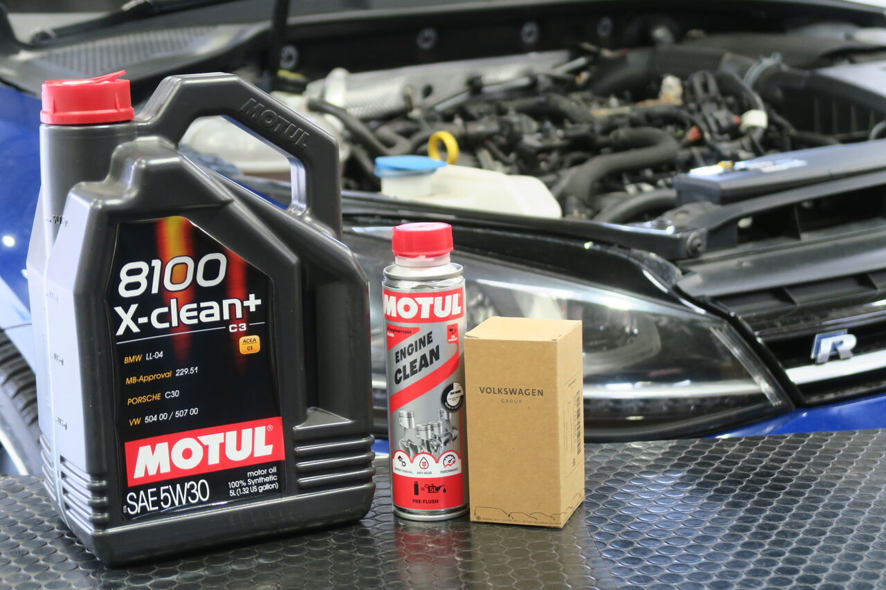 GOLF7.5 GTIのエンジンオイルとバッテリー交換でご来店いただきました。今回エンジンオイル交換前にフラッシング材「MOTUL ENGINE CLEAN」を注入し内部の汚れを洗浄させていただきました。普段のオイル交換では取り切れないスラッジ等の汚れを強力に洗い流し、廃オイルと一緒に排出する事ができます。バッテリーには安定した出力特性と安心の耐久性の 「VARTA AGM Battery」を使用させて頂きました。突然のバッテリートラブルを予防するために3~5年の使用を目安に交換をオススメしています!