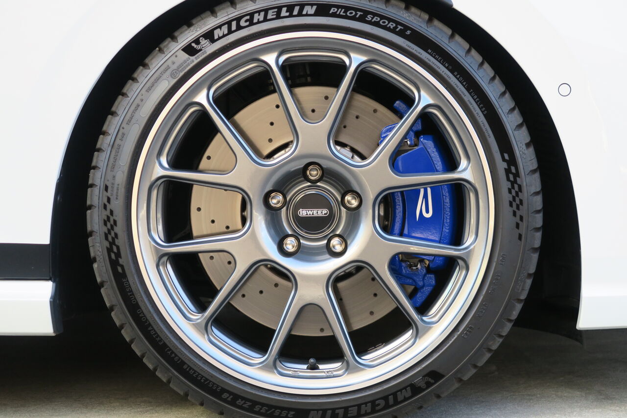 スポークとキャリパーとのクリアランスは十分に確保され、スポーツ走行におけるブレーキの冷却効果にも効果を発揮します。リップデザインのリムにはブランドロゴがあしらわれ、ホイールの存在感が際立ちます!