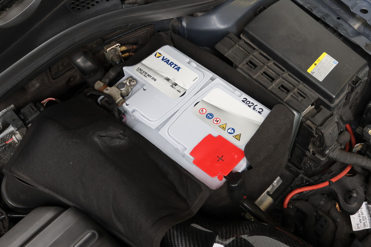 RS3 (8V) Sportbackのバッテリー交換でご入庫いただきました。今回は純正に代えて「VARTA SILVER DYNAMIC AGM」を装着です。純正バッテリーの製造元もVARTAですので信頼性抜群のモデルです。バッテリーは寿命を迎える前兆が無い場合も多く、突然のトラブルを回避するためにも早めの定期交換を推奨しています。交換サイクルは3~4年、また定期点検やオイル交換のタイミング等でのテスター診断がおすすめです。