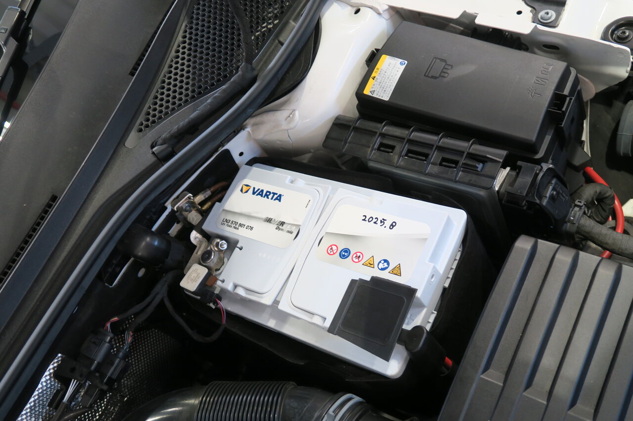 GOLF7.5 Rのバッテリー交換でご来店いただきました。今回使用した「VARTA AGM Battery」はその高い品質と性能から純正供給メーカーとしても採用されており、安心してご使用いただけます。バッテリー交換のタイミングは一般的に3~4年とされていますが使用環境などの影響を受けやすく、突然のトラブルの予防には定期的な点検・診断が重要となります。交換時期についてご不安な方はまずは無料のバッテリー診断からお気軽にご相談ください!