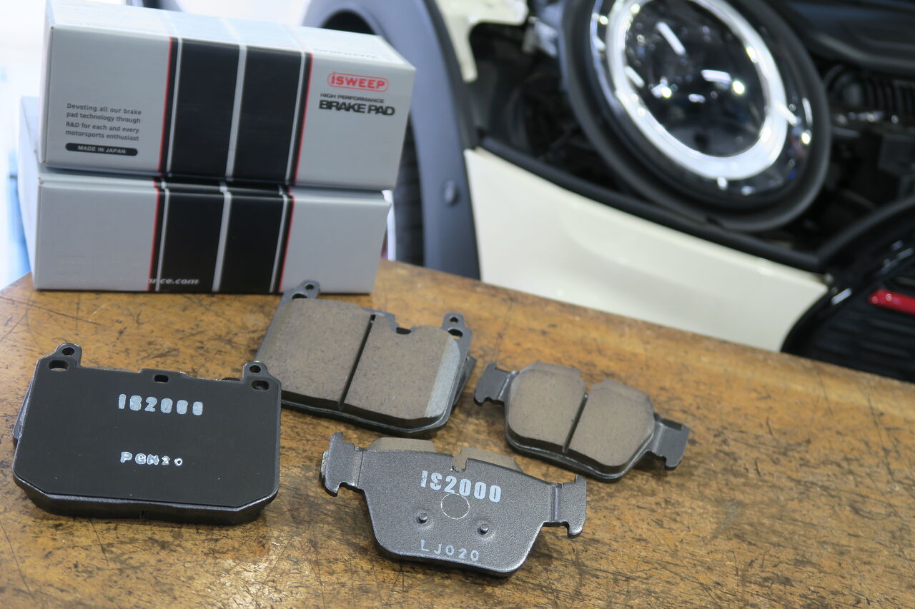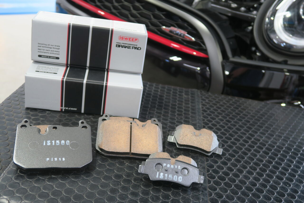 サーキット走行を楽しまれているF56 JCWのフロントブレーキパッド交換でご来店いただきました。ブレーキパッドは「iSWEEP IS3500」をお選びいただいております。強力な制動力とペダル操作にリニアに反応するコントロール性を兼ね備え、思い通りのブレーキング~ターンインをサポートします。iSWEEPブレーキパッドには低ダストタイプのIS1500からサーキット走行・耐久レース向けのIS耐久まで全7種類をラインナップしています。走り方や車両のセッティングに合わせて最適なブレーキパッドをお選びいただけますのでブレーキパッドにお悩みの方はお気軽にお問い合わせください!