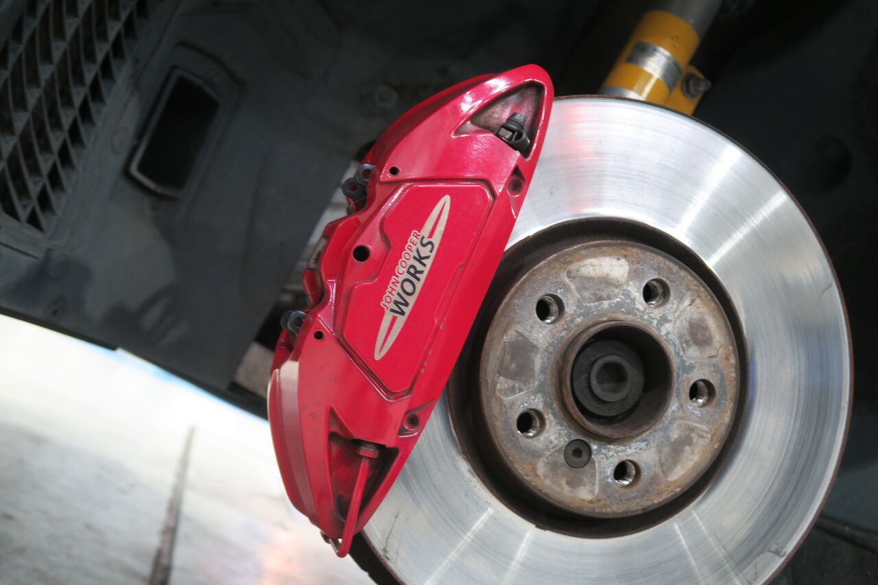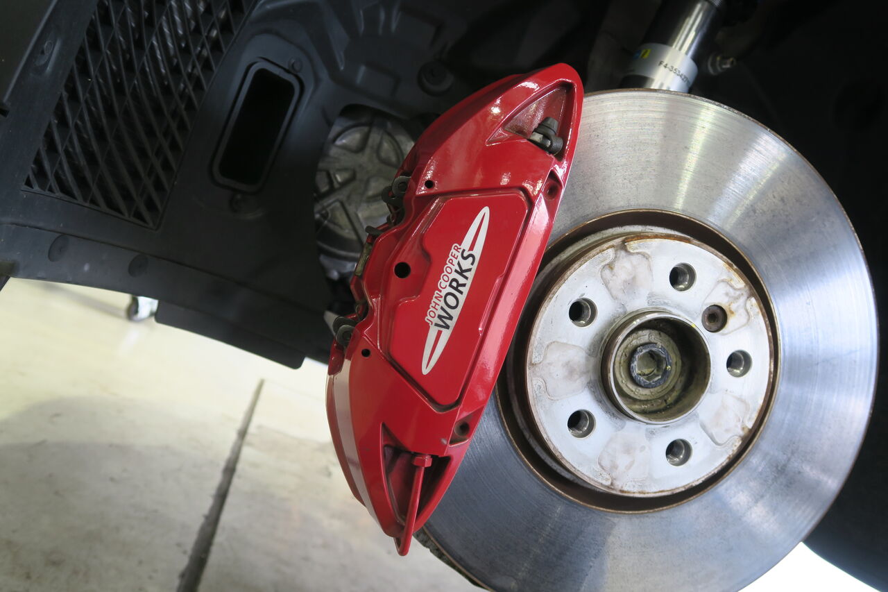 サーキット走行を楽しまれているF56 JCWのブレーキパッド交換でご来店いただきました。今回摩耗していたフロントブレーキパッドをリピートで「iSWEEP IS3500」に交換させていただきました。IS3500は耐熱性や最短距離で減速する制動力はもちろんブレーキング時の細かなコントロール性にも高いご評価をいただき多くのサーキットユーザー様からのご愛顧をいただいております。ブレーキフルードはサーキット走行の高温域で安定性に定評のある「brembo HTC64T」を使用しました。次回のサーキット走行もお楽しみください!