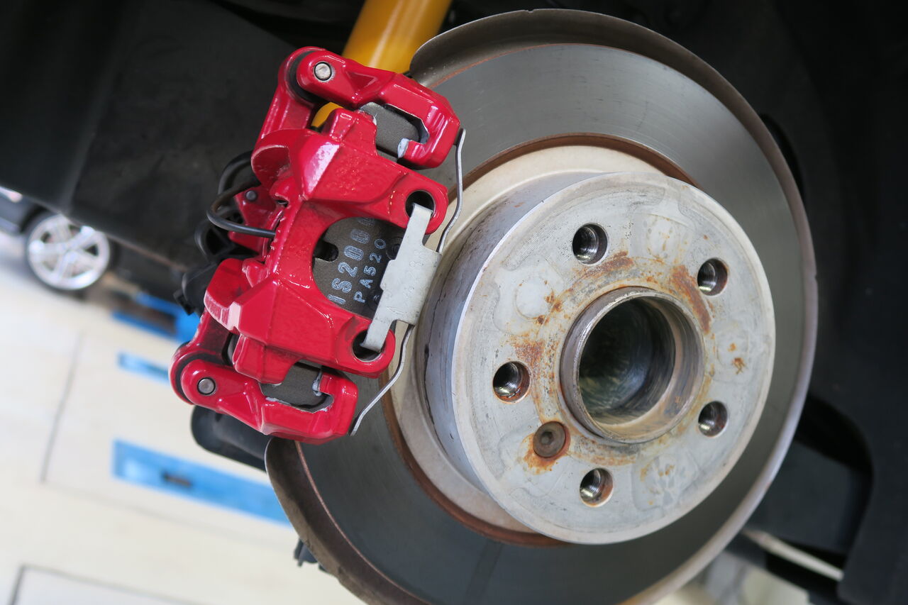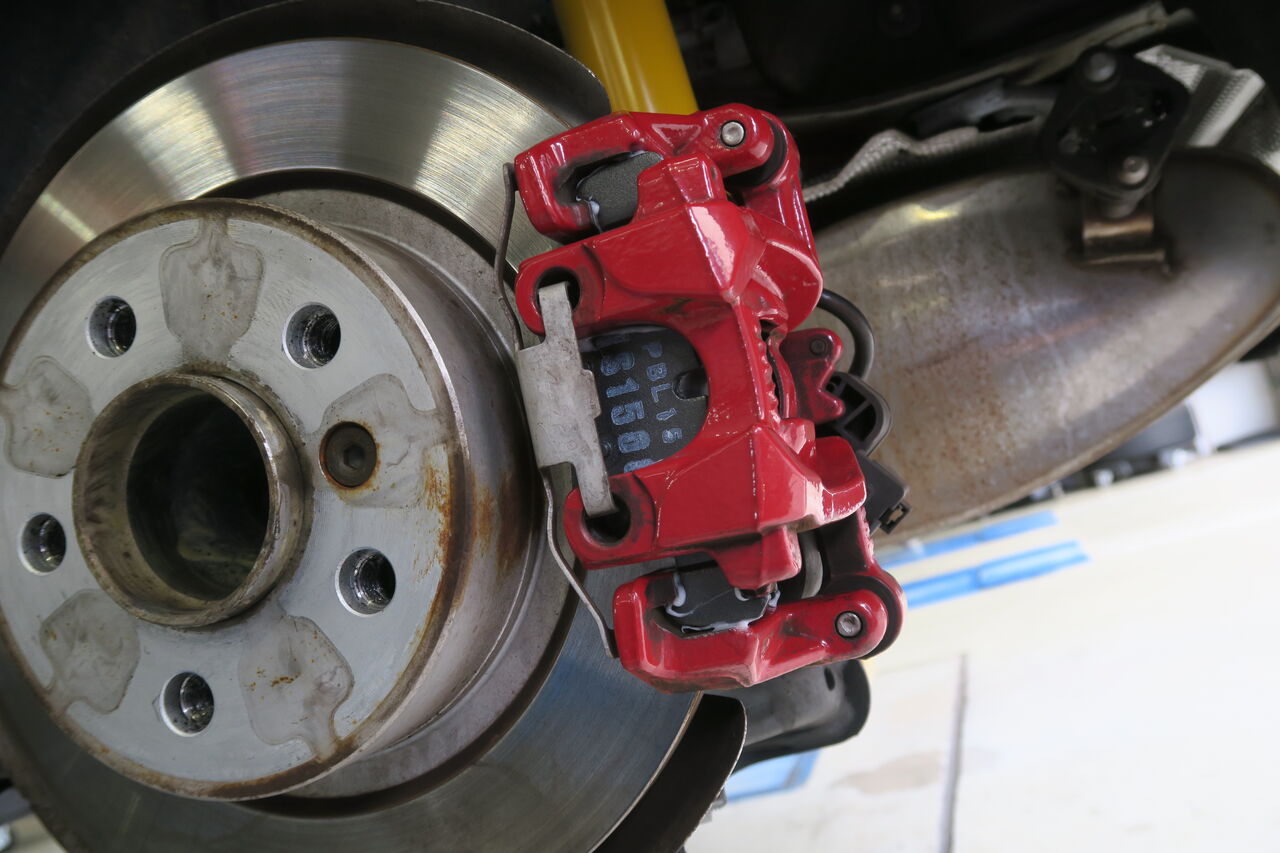 ブレーキのリフレッシュ作業では多くのユーザー様からご好評を頂いている低ダストパッド「iSWEEP IS1500」への交換に併せて同時に摩耗したローターを「DIXCEL PD」に交換させて頂きました。IS1500はブレーキダストの低減と踏力に応じた制動特性が特徴になります。又、ブレーキローターへの攻撃性も低く、ローターの寿命を延ばしてメンテナンスコストの抑制にも貢献しますのでブレーキ周りのリフレッシュ時にもオススメです。これからはブレーキダスト汚れに悩むこともなくなりますので快適なカーライフをお楽しみください!