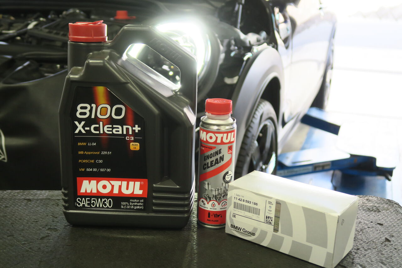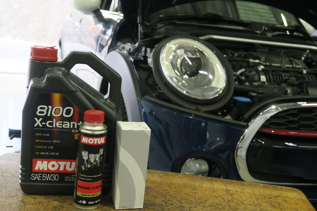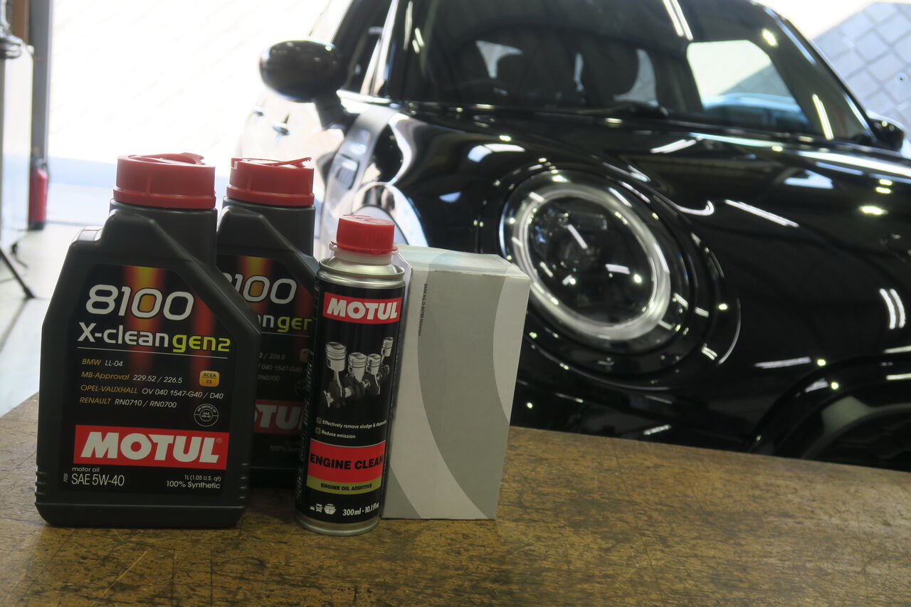 F55 Cooper Sのエンジンオイル交換でご来店いただきました。エンジンオイルには「MOTUL 8100 X-CLEAN GEN2 5W-40」を使用しました。今回エンジンオイル交換前にフラッシング剤「MOTUL ENGINE CLEAN」を注入してアイドリングさせて内部の汚れを洗浄させて頂きました。オイルの洗浄力だけでは取り切れないスラッジ等の汚れを強力に洗い流し廃オイルと共に排出することで新しいオイルの性能をフルに発揮させることが可能です!ie_staff_blog at 10:00|Permalink│