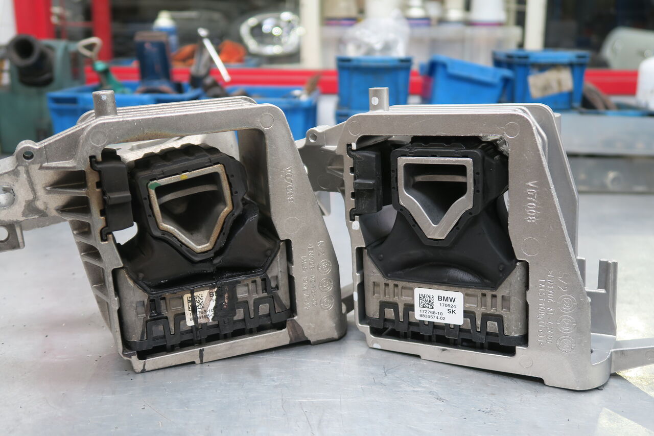 F60 JCW LCIのエンジンマウント交換でお預かりしました。エンジンオイル交換にてご来店時にマウントの亀裂が見つかりましたので部品をお取り寄せして交換しました。亀裂が進行すると車内に伝わってくるエンジンの振動が大きくなったり最終的にエンジンマウントが千切れてしまうことがあります。エンジンオイル交換等でご入庫頂いた際には車両全体を点検させていただきますのでトラブルを早期発見することが出来ますので是非お役立てください!
