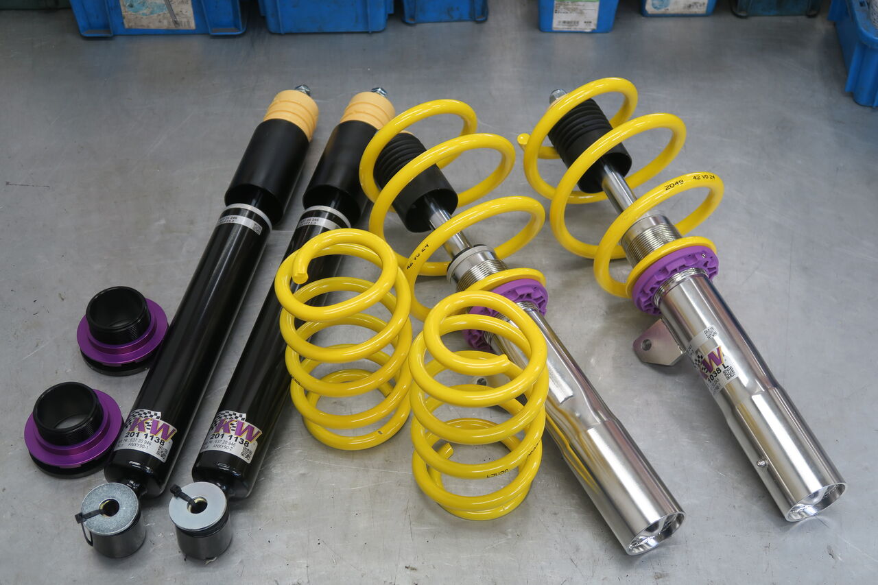 F66 JCWに「KW V2 Comfort」を装着させていただきました。車高を下げつつもコンフォート性を確保しており乗り心地の良い車高調整式サスペンションです。ローダウンスプリングでは調整の出来ない左右差や前後の車高バランスを細かく調整することが出来ますので理想的なフォルムに近づけることが出来ます。車高は純正比フロント約35ミリ、リア約15ミリダウンに調整させていただき前後バランスを整えさせていただきました!最後に4輪アライメント調整を行い完成です。ie_staff_blog at 15:00|Permalink│