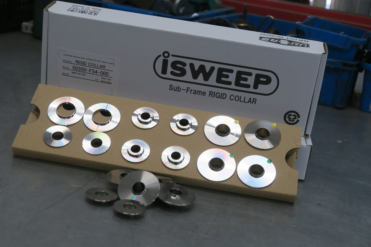 F60 Cooper SDのブレーキパッド交換とリジカラの取り付けでご来店いただきました。ブレーキパッドはブレーキダストによるホイール汚れの改善のため「iSWEEP IS1500」に交換させて頂きました。制動力を犠牲にすることなくブレーキダストを低減することが出来ますので安心してご使用いただけます。「iSWEEPサブフレームリジットカラー」はアルミ製リジットカラーをサブフレームとボディ、結合ボルトの間に挟み込むことで、双方の接触面を拡大・安定させることで締結強度を向上させます。サブフレームとボディが一体化することで段差を乗り上げた時の不快な振動の軽減や乗り心地の向上、直進安定性の向上などの効果を体感していただけます!