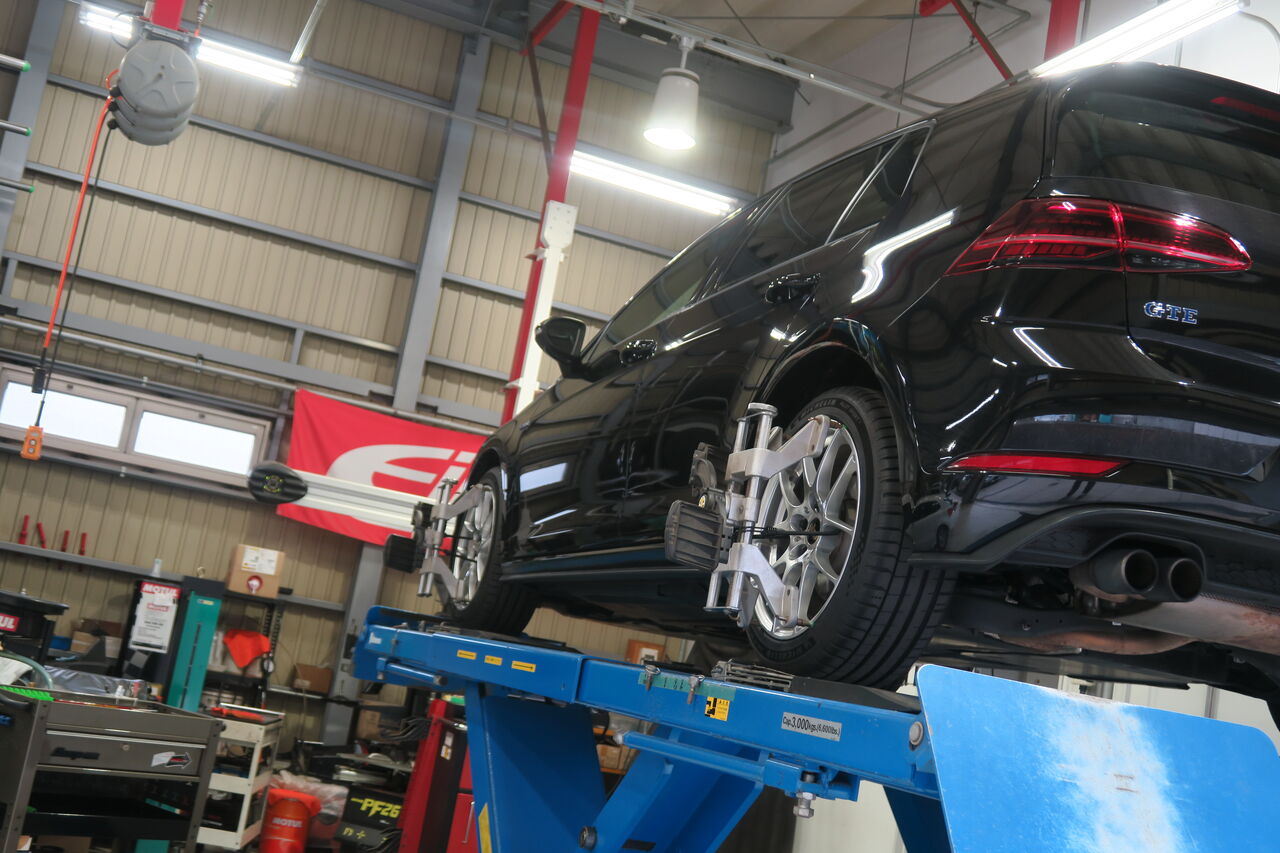 GOLF8 Rのアライメント調整でご入庫いただきました。アライメント調整は車両に対してのホイール取付角度を最適化する作業です。アライメントが大きくズレるとまっすぐ走らないなどの不調が起きますが、体感できないわずかなズレでも車両本来の走行性能が失われたり長期的にタイヤの偏摩耗の原因になってしまう場合があります。新車状態でも完璧でないケースもございますので、状態の診断として測定だけの施工も承っております。ie_staff_blog at 11:00|Permalink│