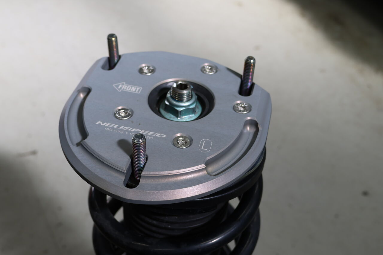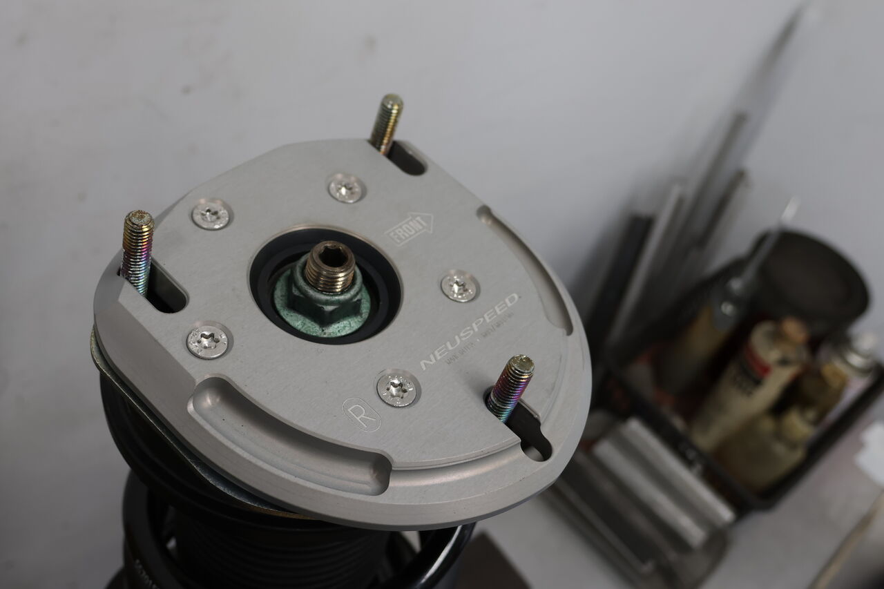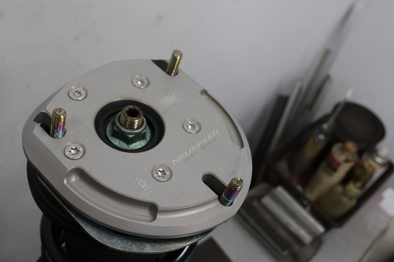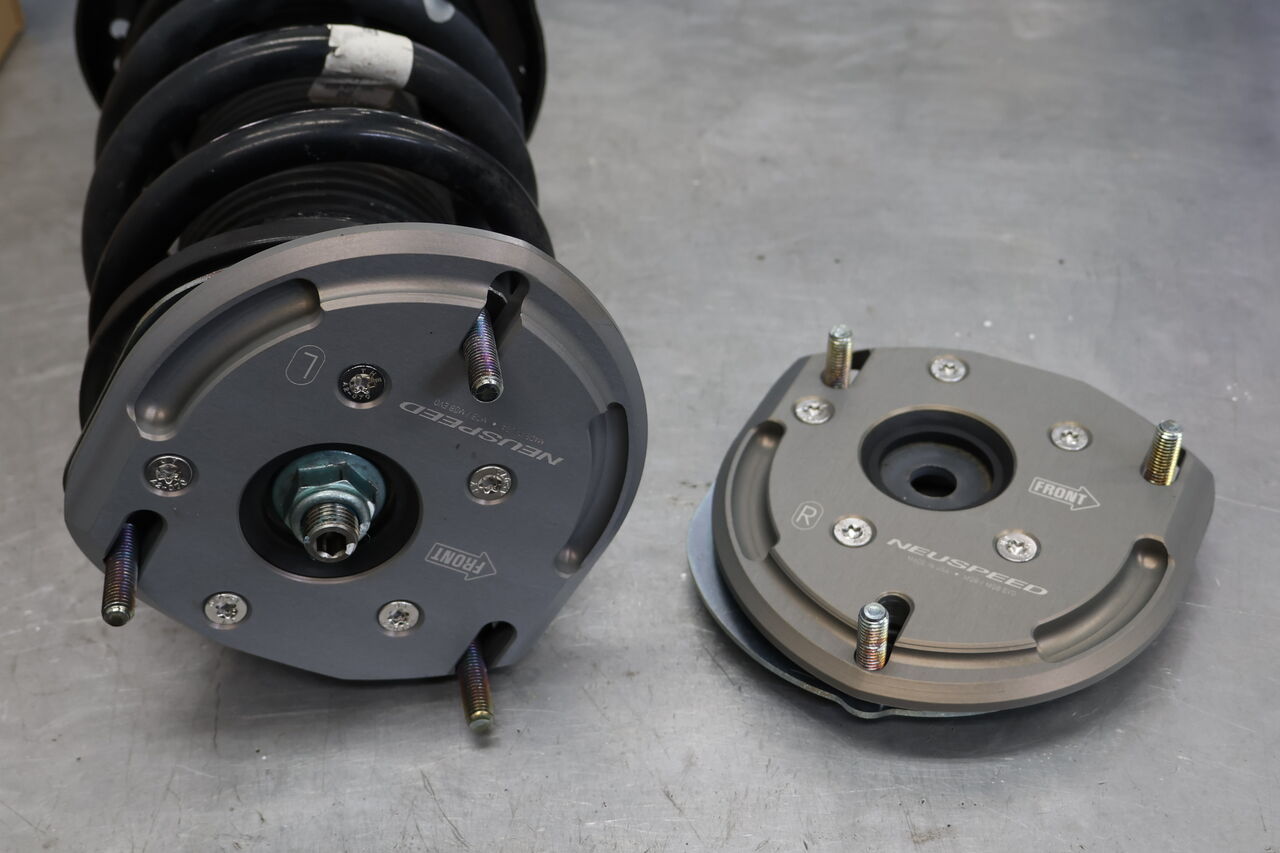 RS3(8V) Sportbackに「NEUSPEED Billet biAXIS Upper Strut Mount」を装着させていただきました。純正サスペンションや純正アッパーマウントを使用するサスペンションにキャンバー調整を可能にするアッパーマウントになります。車両取り付け部のボルトがスライドすることで細かく調整できますので、今回はお客様のご希望に合わせて約-2.5°に調整させていただきました。セッティングの幅を広げることが出来ますので気になる方はお問い合わせください!