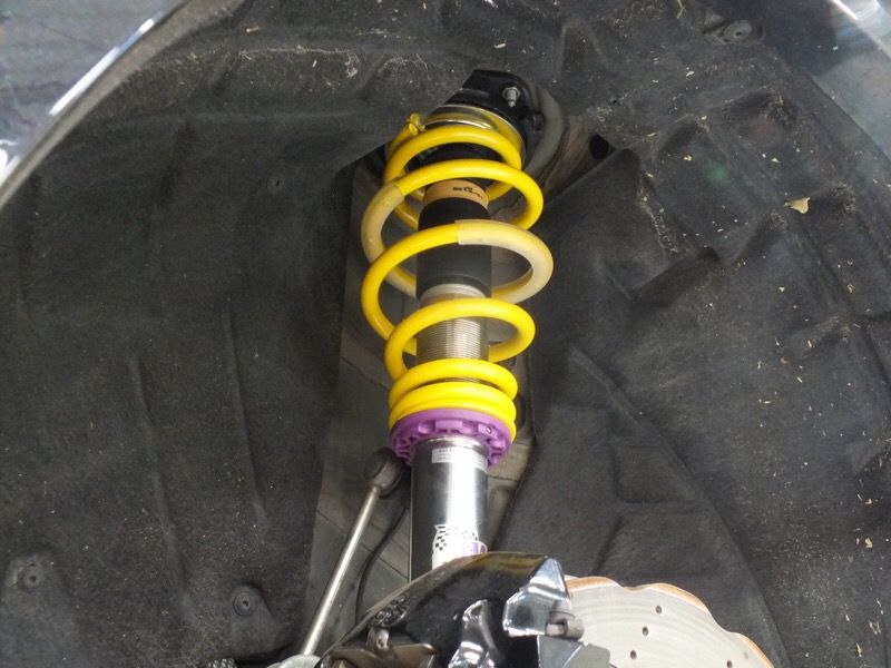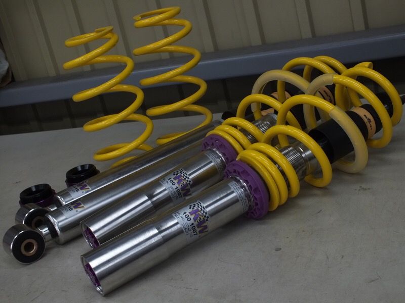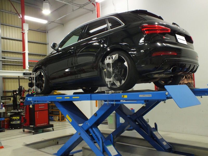 RS Q3にKW Suspension System Version.3の取付を行いました。Version.3は、サスペンション伸び側と縮み側の減衰力がそれぞれ調整可能な減衰力独立調整機能を採用している車高調整型のサスペンションです。