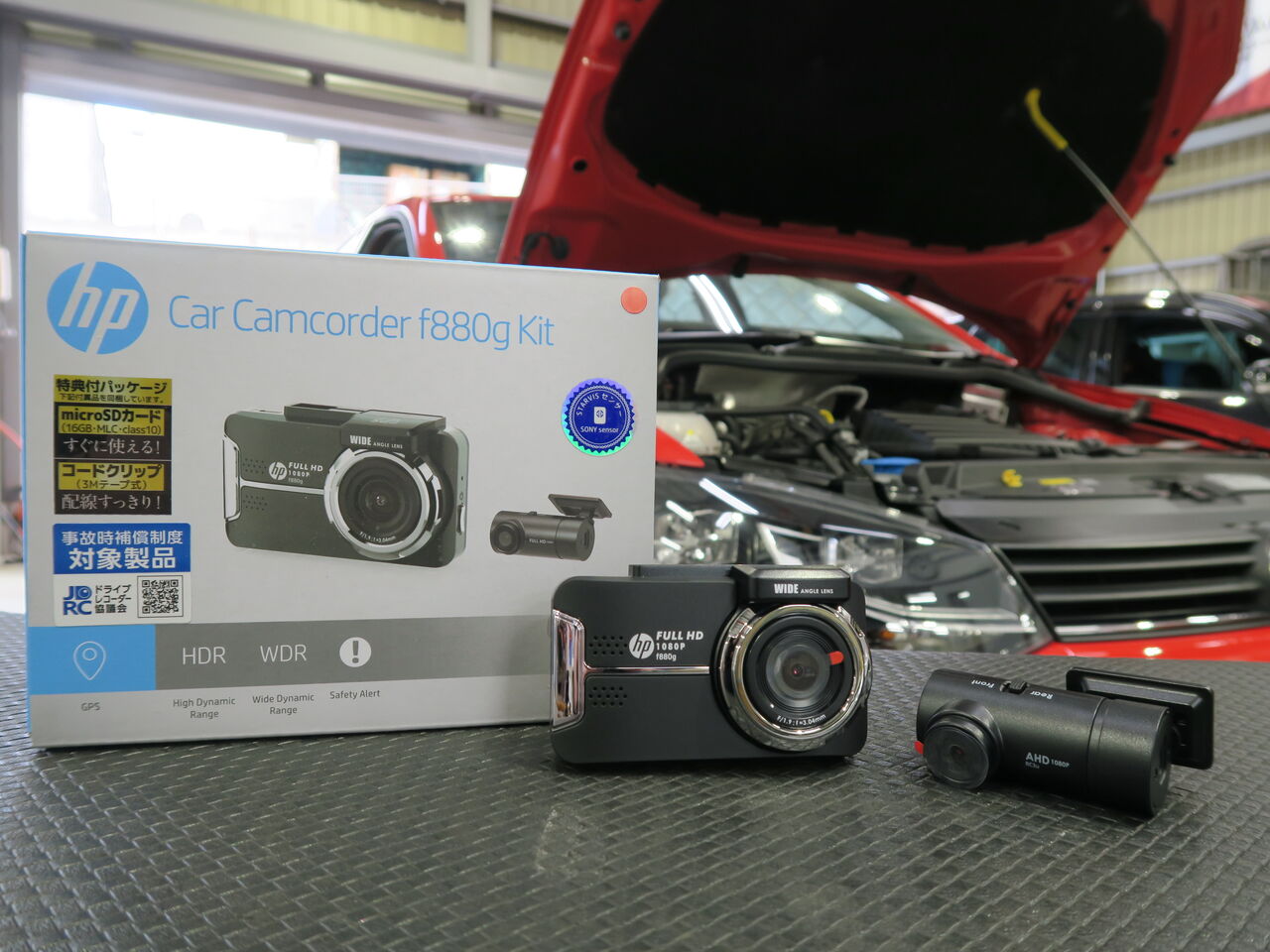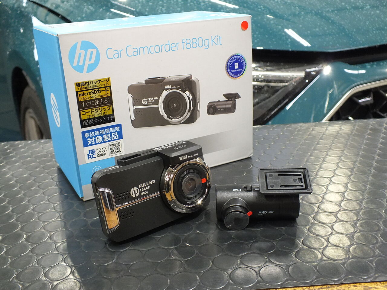 ブレーキパッド交換とドラレコ装着を行いました。ブレーキパッドはiSWEEP IS1500を使用しました。低ダストでホイールをきれいに保ちブレーキ操作をナチュラルにします。ドラレコはHPのF880Gです。