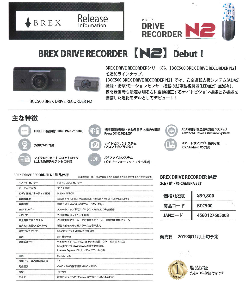 新作:BCC500 BREX DRIVE RECORDER N2登場