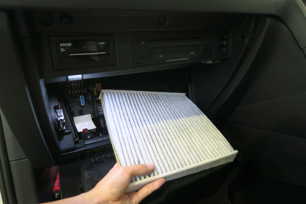 GOLF7.5 Rの12ヶ月点検でお預かりしました。今回12ヶ月点検と同時に消耗品であるエンジンオイル、ワイパー、エアコンフィルターの交換をご依頼いただきました。エアコンフィルターは車内にホコリやゴミが入ってこないようにする役割があり、取り除いた異物がフィルターに溜まると目詰まりを起こしてエアコンの風量が低下したり異物によって嫌な臭いが発生する原因にもなります。使用環境にもよりますが1年ごとに交換するのがオススメです!当店では純正品のお取り寄せやアレルゲン物質も吸着する「MANN FILTER フレシャスプラス」をご用意できますのでお気軽にお問い合わせください。